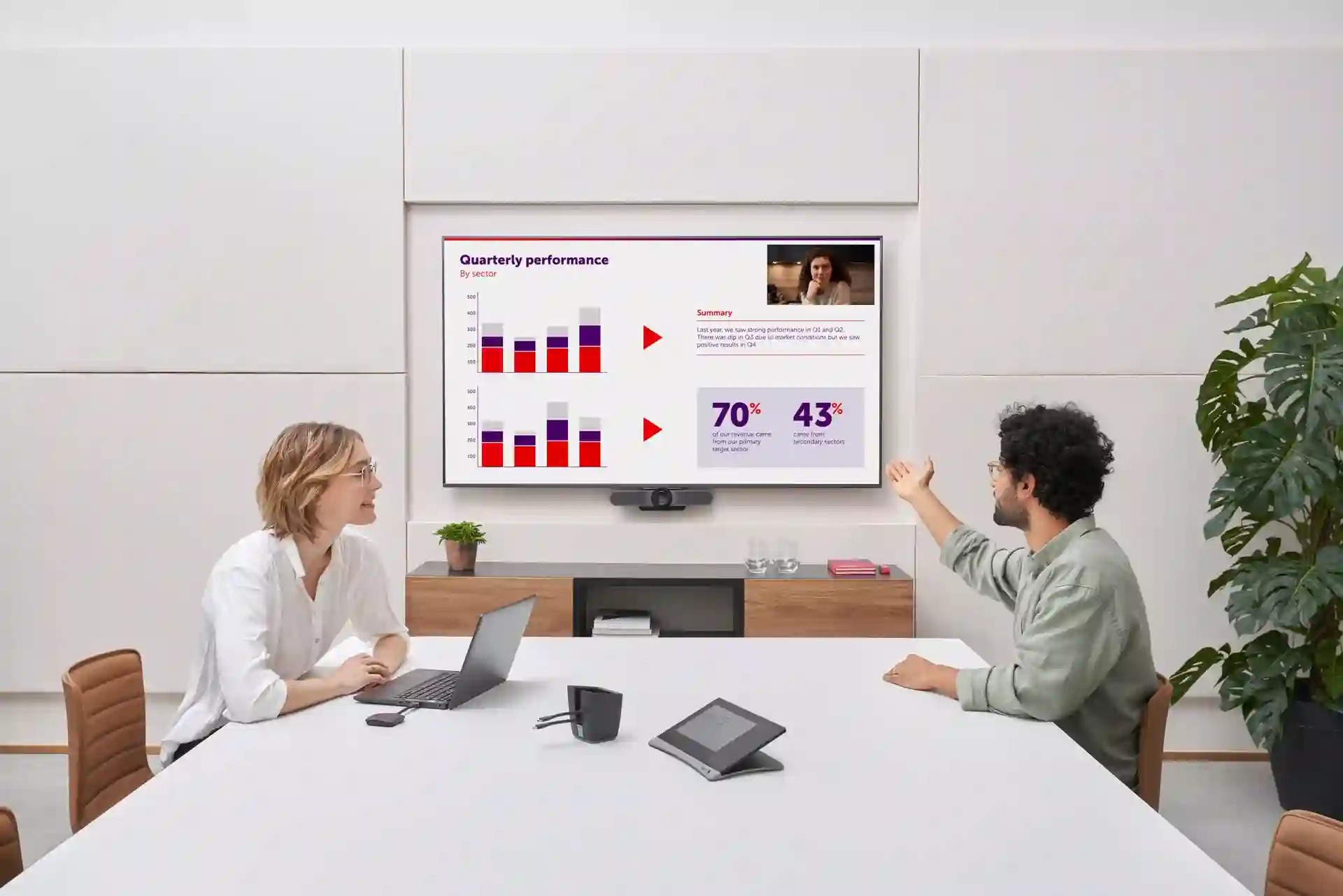 ClickShare CX-30 võimaldab juhtmevaba konverentside pidamist keskmise suurusega koosolekuruumides. Kui sisenete koosolekuruumi, ühendab ClickShare teid automaatselt ruumi seadmetega, nagu kaamerad, mikrofonid, kõlarid, heliribad ja kuvarid.